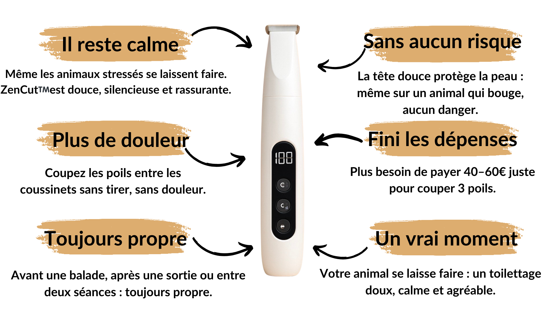 Pour trois poils entre les coussinets je devais payer une fortune…Là je fais tout à la maison, sans stress, et honnêtement le résultat est aussi propre. La ZenCut est déjà rentabilisée.